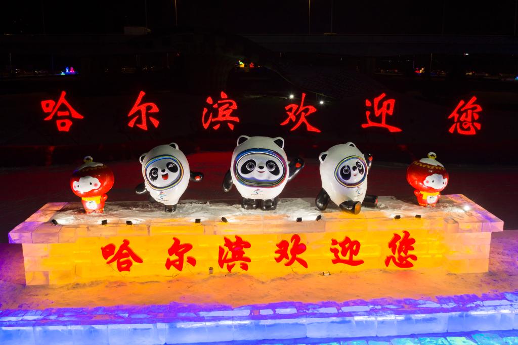 在“百年老街”中央大街,北京2022年冬奧會(huì)吉祥物“冰墩墩”和冬殘奧會(huì)吉祥物“雪容融”變身巨大冰雕,“冰里有條魚”的話題登上網(wǎng)絡(luò)熱搜榜。周邊冰景還有火炬冰柱,加上沿街懸掛的彩燈、中國(guó)結(jié),好不熱鬧。