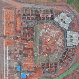 圖為1月20日拍攝的福集鎮魚目村聚居點建設現場(無人機照片)。 新華社記者劉坤 攝