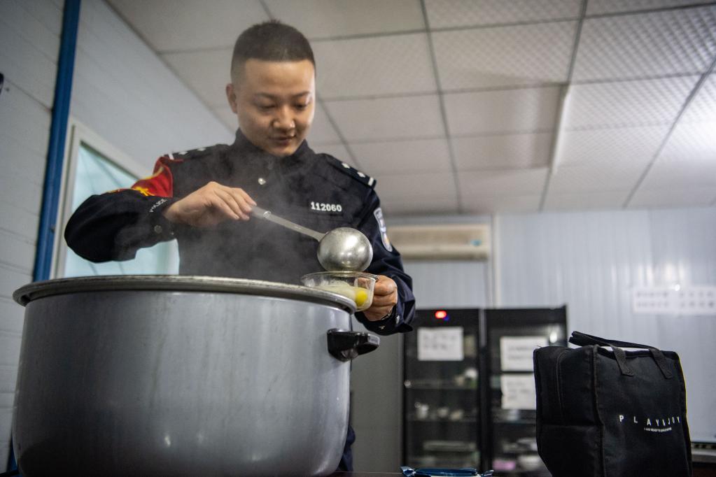 早上7點,已經換上黑色制服、完成出勤準備的祁悅,從單位食堂的鍋里,舀起最后一顆湯圓,裝進為妻子準備的飯盒。