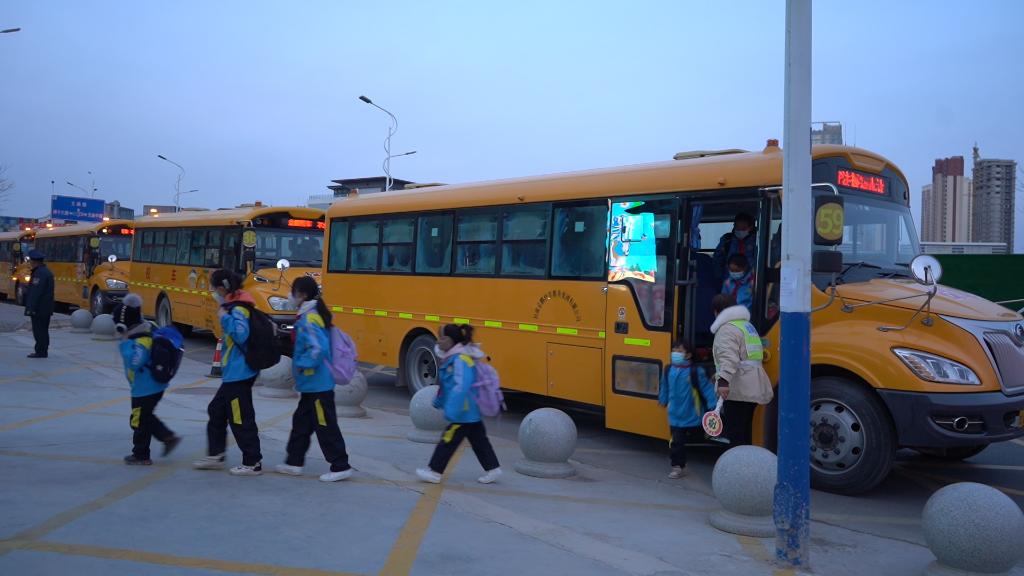 開學第一天,蘭州新區第二小學學生乘坐校車上學。(新華社記者王紫軒 攝)