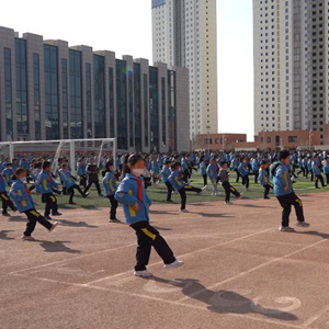 22日,蘭州新區第二小學學生們在操場上做課間操。(新華社記者王紫軒 攝)