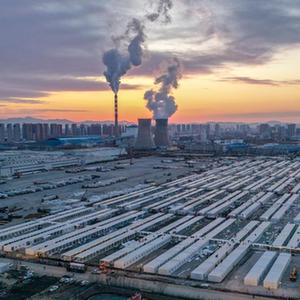 這是3月20日傍晚拍攝的吉林市高新南區隔離方艙建設現場(無人機照片)。新華社記者 張楠 攝