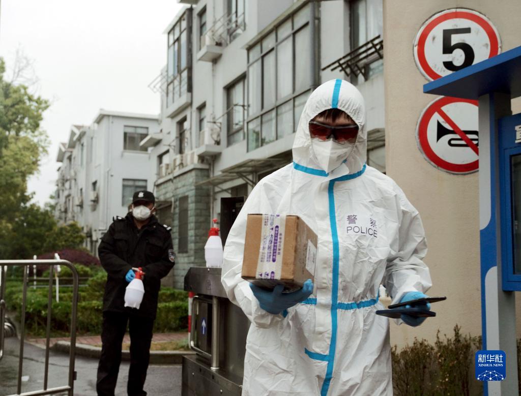 4月16日,上海市公安局經偵總隊增援北蔡派出所民警為轄區(qū)內一名癌癥患者取送抗癌藥物。新華社發(fā)