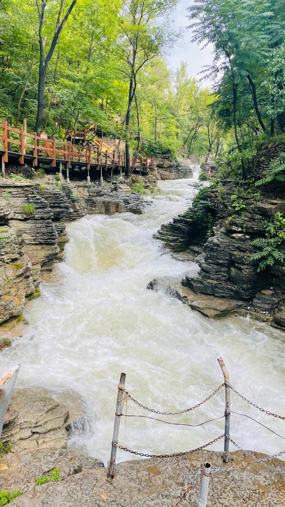 新華社濟南7月6日電(記者陳國峰)盛夏的魯中山區雨水豐沛,一場雨過后,藏在大山深處的北崔崖村空氣清新,青山如洗,村旁的遇龍河湍湍流淌,引來不少游客親水消暑。