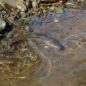 新華社西寧8月10日電(記者張龍)游弋在瑪可河中,幾尾川陜哲羅鮭還未能完全適應它們的“新家”,在淺水洼中靜待了幾分鐘,尾巴一擺,游向深水區。