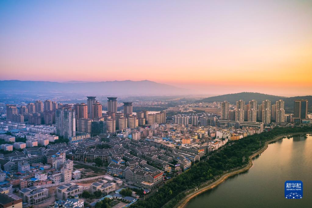 這是云南省彌勒市市區一景(無人機照片,2018年11月29日攝)?!⌒氯A社發(李昱廷攝)