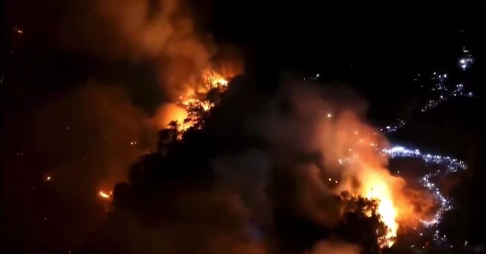 8月25日晚,重慶市北碚區縉云山的山火現場。受訪者供圖