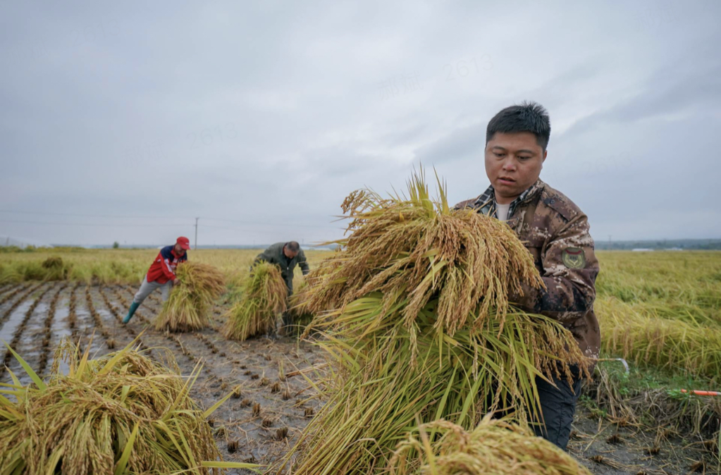 張鐵政在稻田里忙著秋收。(受訪者供圖)