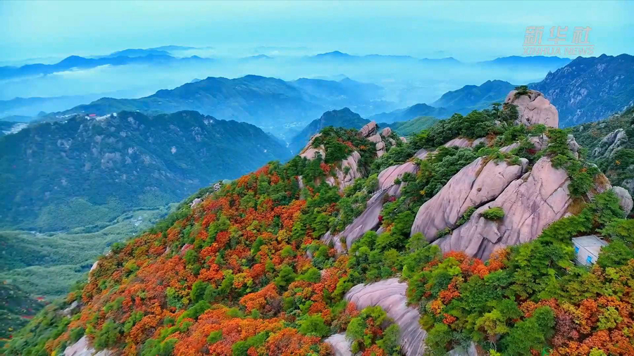 十月末,位于安徽省池州市的九華山風景區,秋意正濃,秋色蔓延,如同一幅濃墨重彩的油畫。九華山高海拔的地形條件和多樣的植物群落組合,形成了這樣的自然風光。