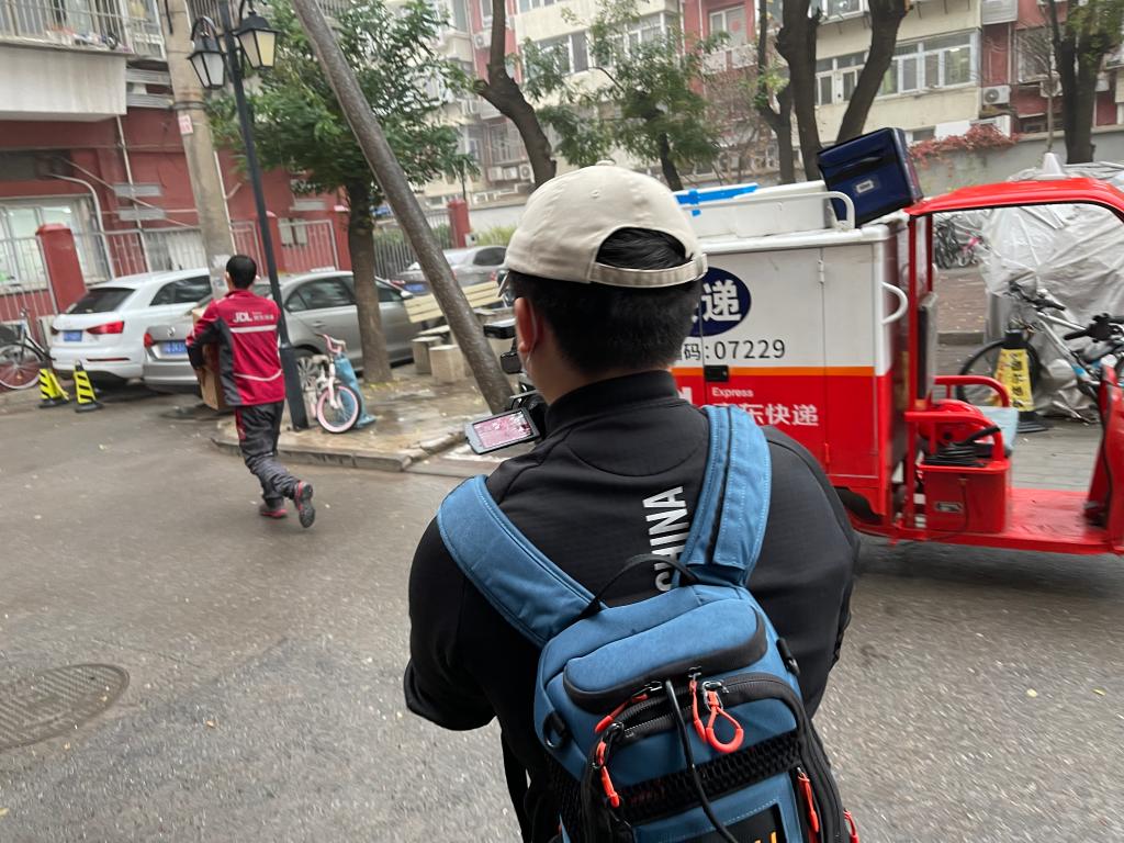 “‘雙十一’單量多,一車120多件,一上午必須送完。”欒玉帥對著鏡頭簡單自我介紹后,話不多說,迅速開送!