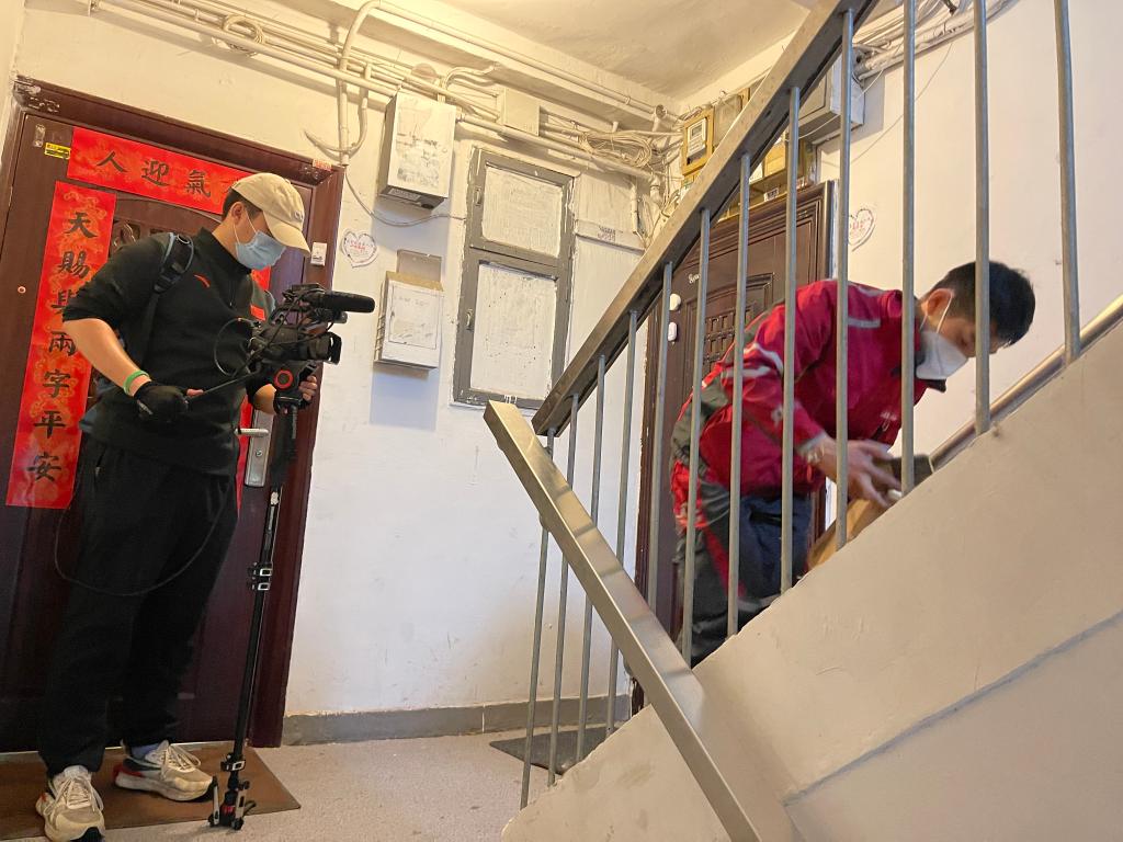 一步兩階梯,上樓如平地,這是拿著幾件小件快遞上樓的欒玉帥;一口氣上六樓,中間不停歇,這是手拿肩抗米面油的欒玉帥。追了小哥一路,被小哥甩了一路,記者正懊惱時,一位街坊的“玩笑話”讓記者印象深刻:“他在樓下按完門禁我住三樓就能開門,這時他剛好到門口。”