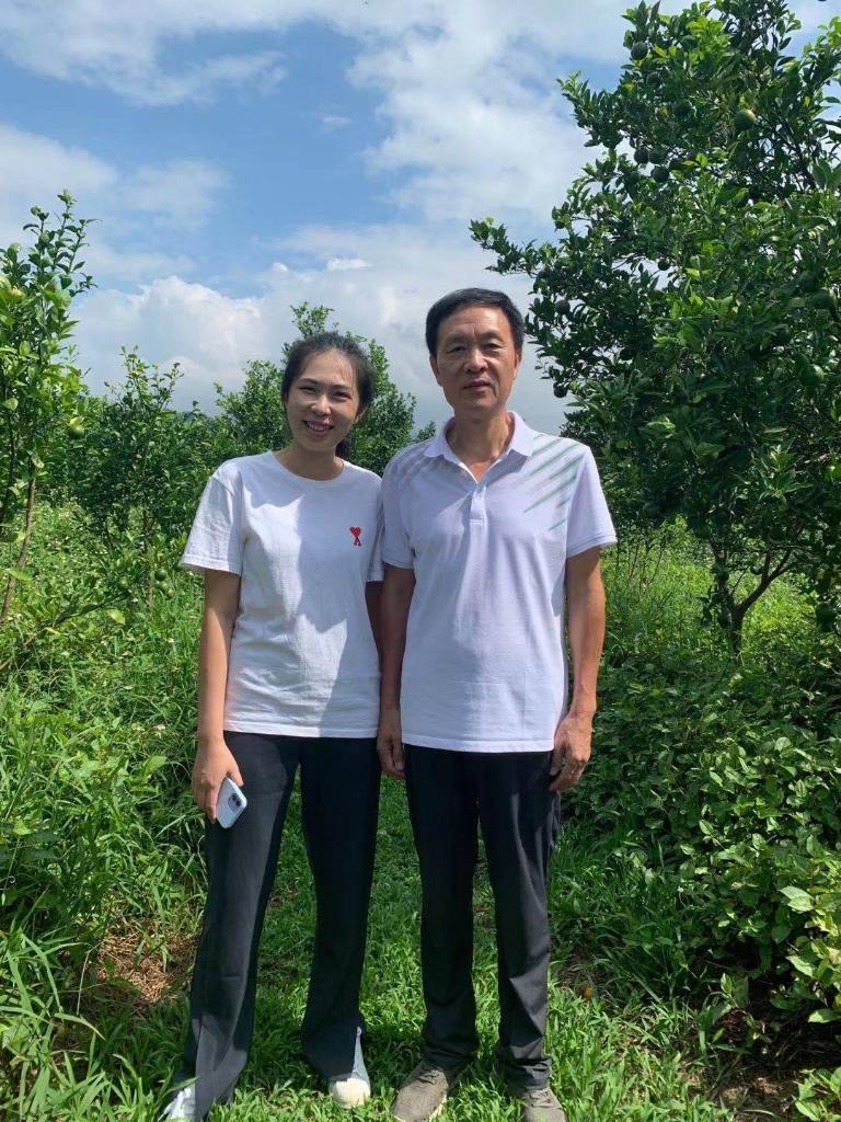 陳慧和父親在貢柑園里的合影。受訪者供圖