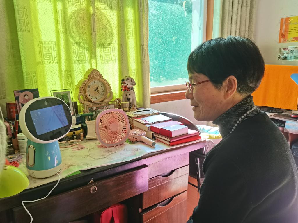 胡清蘭和家中的智能機器人溝通對話。新華社記者 汪海月 攝