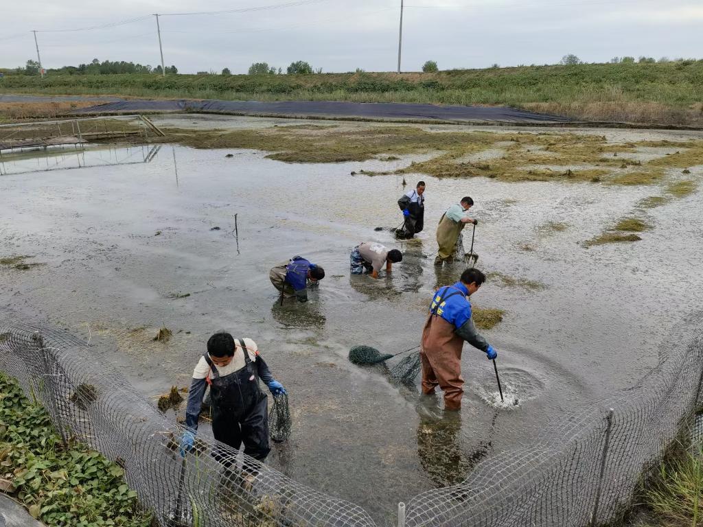在生態甲魚養殖基地,村民們正在捕撈甲魚。(采訪對象供圖)