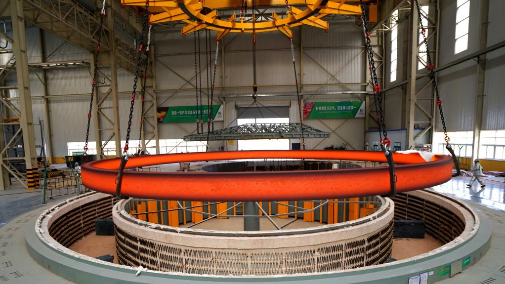 在伊萊特能源裝備股份有限公司,環(huán)形大鍛件正在軋制中。(資料片 新華社發(fā))