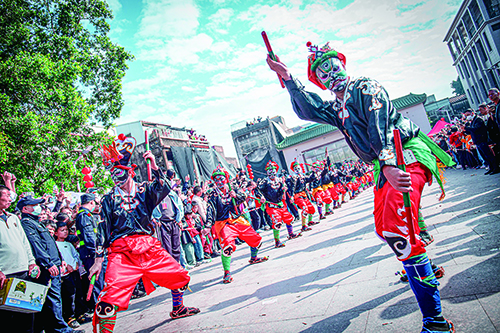 汕頭市潮陽區非遺保護中心主任翁木順說,從演員面具臉譜的發展變化可以看出端倪——早年的臉譜和儺舞相似,后來戲劇角色占據了主流,如今則主要借鑒小說《水滸傳》中的人物形象。