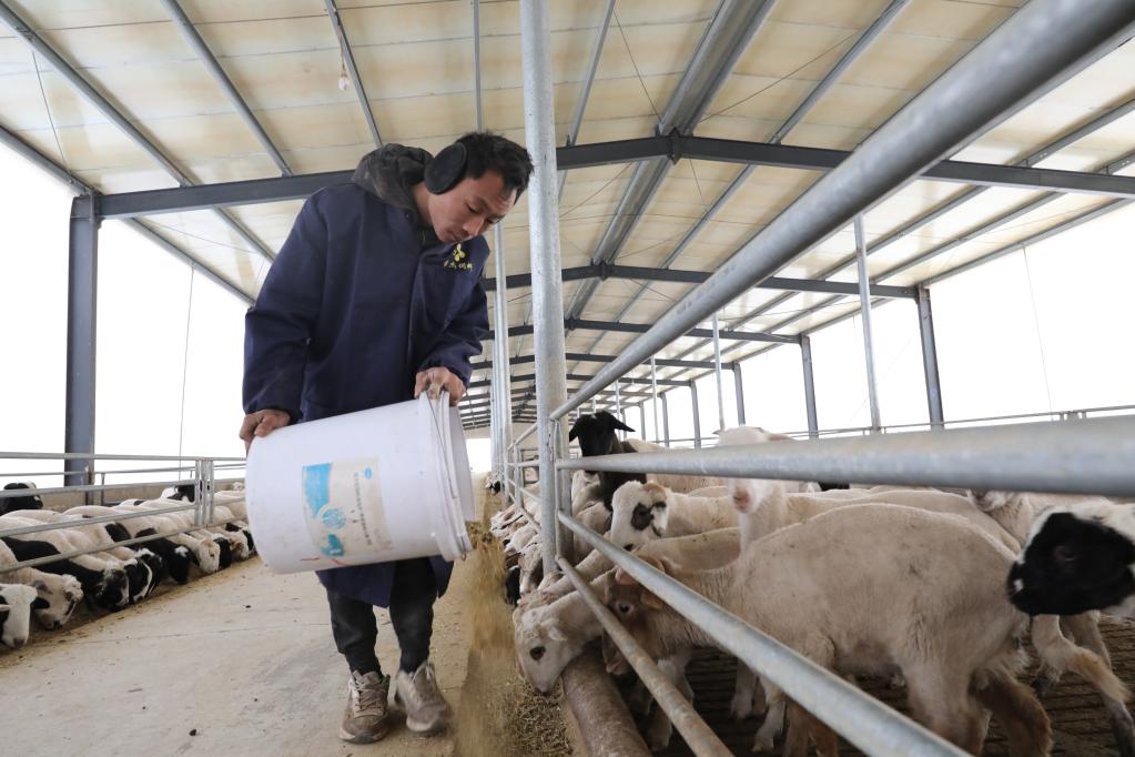 在河北省邯鄲市邱縣前小河套村村東頭,“羊倌”王文勝管理的3000多只羊7點鐘就吃上了“豐盛早餐”。