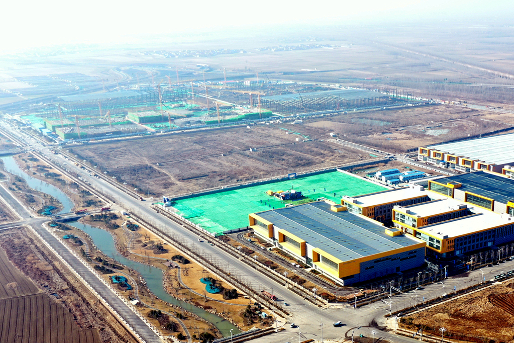 2月14日,在濟(jì)南新舊動(dòng)能轉(zhuǎn)換起步區(qū),比亞迪智能車零部件配套產(chǎn)業(yè)園項(xiàng)目正在建設(shè)中。(無(wú)人機(jī)圖片 新華社記者朱崢 攝)