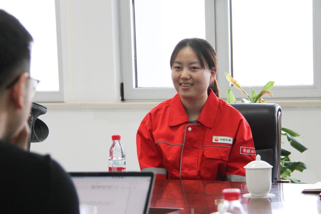 2月23日,中國石油新疆油田公司采油二廠員工阮思雅接受采訪。新華社記者劉紅霞 攝