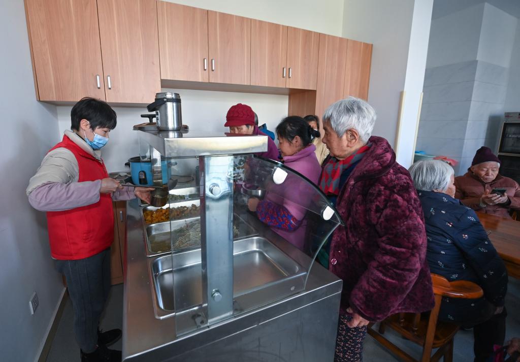 2023年2月21日,老人們在杭州市臨安區錦南街道居家養老服務中心的食堂用餐。新華社記者徐昱 攝