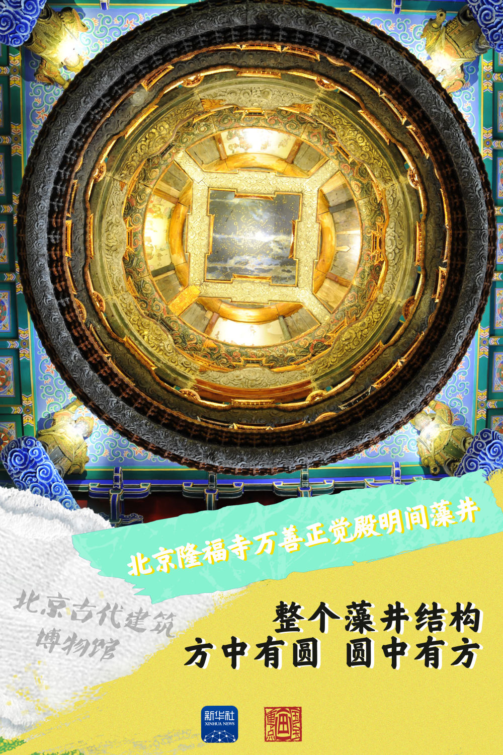 北京古代建筑博物館的鎮(zhèn)館之寶是這座美輪美奐的藻井,整個(gè)藻井的結(jié)構(gòu)為方井內(nèi)含圓井,圓井內(nèi)又含方井。藻井四角立力士雕像,意在托起中心圓井。圓井應(yīng)為六層框架,現(xiàn)存有五層,其中幾層之上布置有天上宮闕。宮闕里有精雕細(xì)琢的仙人天女,表情神態(tài)極為細(xì)膩。藻井的最上方是一幅星象圖,在燈光照射下宛若星河。