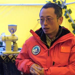 中國科學院西雙版納熱帶植物園的研究員蘇濤在珠峰登山大本營接受新華社記者采訪。
