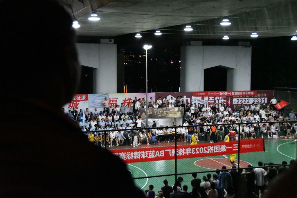 5月27日晚,市民在株洲市四橋籃球場觀看球賽。新華社記者 劉芳洲 攝
