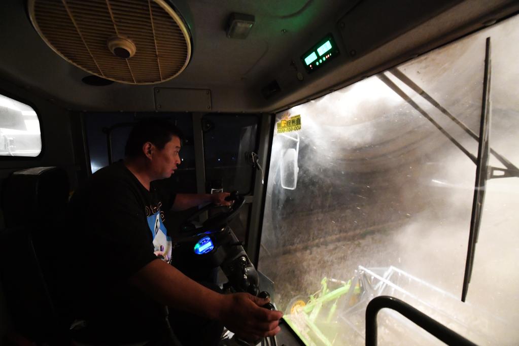 夜燈打開的一瞬,袁榮隨疲憊的雙眼本能地放出亮光。這已是他今年連續(xù)奮戰(zhàn)麥?zhǔn)盏牡?9天。“5月10號就帶著兩臺收割機(jī)去了湖北,現(xiàn)在大概割了3000多畝麥子。”記者坐上袁榮隨的收割機(jī),每次眼看就要撞上電線桿和凸起的地壟、地埋管時,袁榮隨都能輕松避過,沒有一絲慌亂。“往年很少通宵作業(yè),今年天氣不好,農(nóng)民著急收割,我們基本24小時不停。”袁榮隨說。
