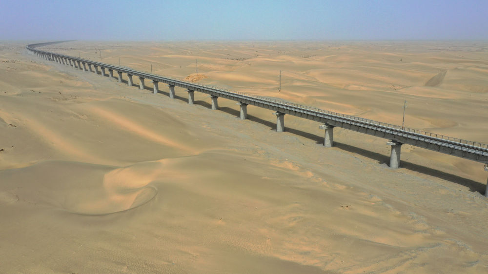 去年6月,和若鐵路通車,與先前開通的格庫鐵路、南疆鐵路“牽手”,標志著環塔克拉瑪干沙漠鐵路線形成閉環。這也是世界首條環沙漠鐵路線,全長2712公里。
