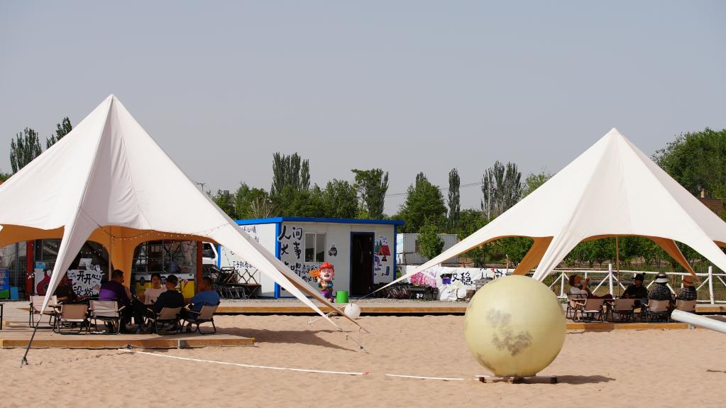 游客在胡家堡村“沙灘露營地”游玩。(靈武市融媒體中心供圖)