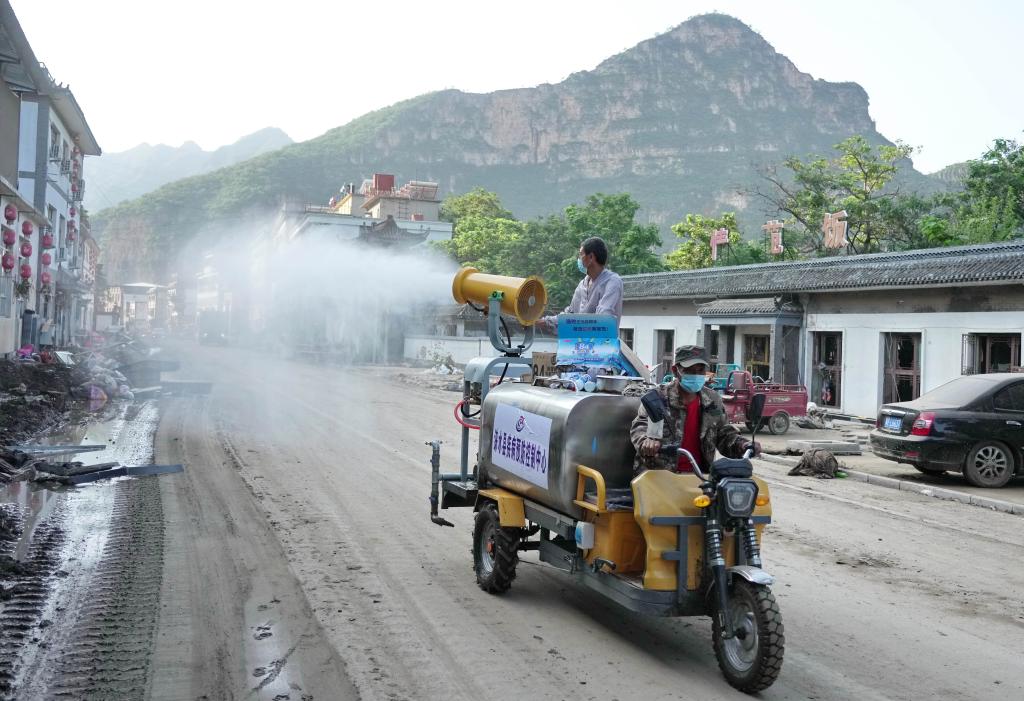 8月8日,志愿者在淶水縣三坡鎮下莊村進行消殺作業。新華社記者楊世堯 攝