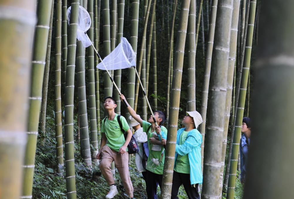 2022年7月23日,首屆武夷山國家公園自然教育活動中,中小學生在武夷山國家公園大竹嵐捕捉昆蟲。新華社記者 姜克紅 攝