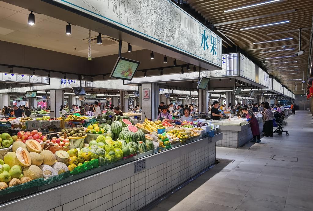 過(guò)道寬敞明亮,攤位井然有序,地面不見(jiàn)污漬,墻角沒(méi)有垃圾。抬頭一看,智慧顯示屏上攤主信息、今日菜價(jià)寫得清清楚楚;手機(jī)一查,小程序里農(nóng)貿(mào)產(chǎn)品質(zhì)量抽檢結(jié)果標(biāo)得明明白白。