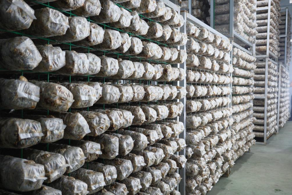 9月6日,德祥實業有限公司生產加工基地內,菌棒被培育在恒溫培養室。新華社記者 趙鑫虎 攝