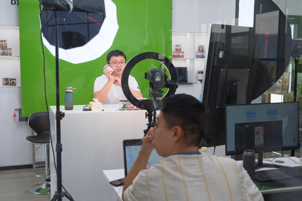 9月6日,銷售人員正在德祥實業有限公司內進行電商直播。新華社記者 趙鑫虎 攝