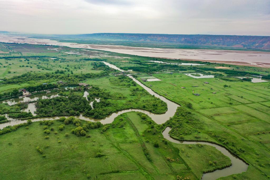 2023年6月2日,無人機拍攝的陜西省渭南市合陽縣境內的黃河濕地。新華社發(趙嘵罡 攝)