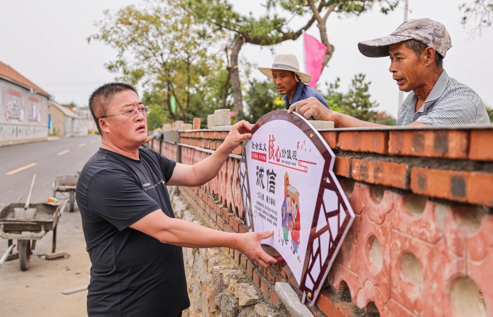 村黨支部書記張志強和村民一起勞動。新華社發(fā) 李信君攝