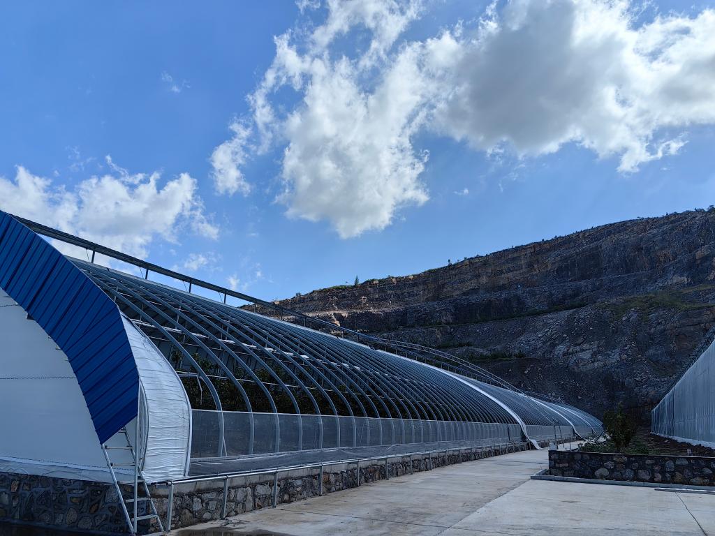 悅莊鎮下龍巷村一處廢棄的石材礦坑里,幾個櫻桃大棚惹人注目。記者走進其中一個大棚,一陣涼氣撲面而來,不禁讓人打哆嗦。下龍巷村村委委員楊振偉介紹說,這是為了讓櫻桃提前進入休眠期,利用制冷降溫設備、智能霧化噴藥換風系統等為它降溫,趕在春節前錯季上市。