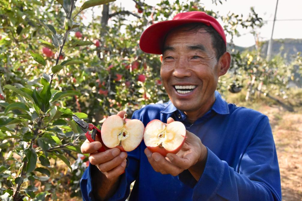 在環抱著縣城的一道道山梁上,同樣的笑容出現在果農臉上——他們又迎來了一年的蘋果收獲季。