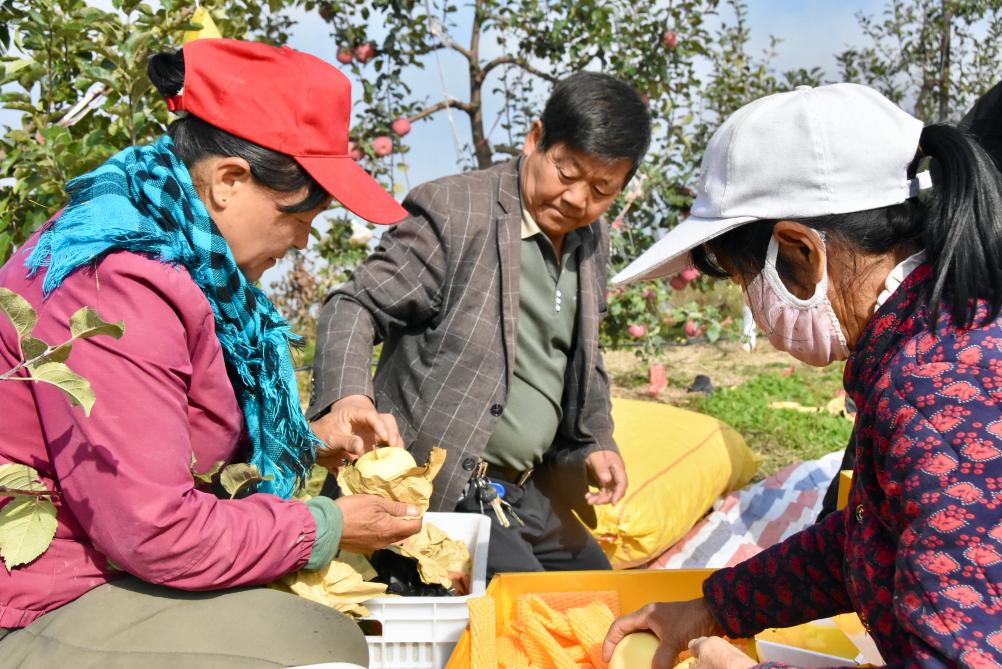 “我每天早晨七點半開始采摘、分揀、裝箱,一直干到下午六點,經手的蘋果得兩三千斤。”果農尚生艷說著便掰開一個蘋果,鮮明的糖心上還流著汁水。