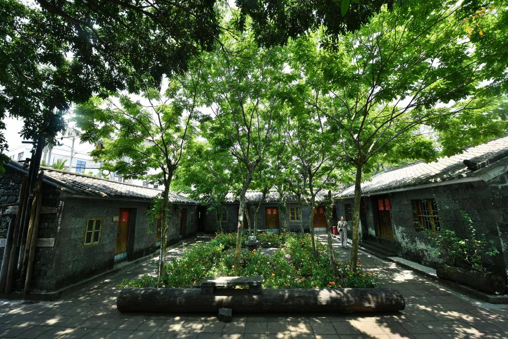 這是施茶村一家特色民宿,建造房屋的材料是火山石。新華社記者郭程 攝