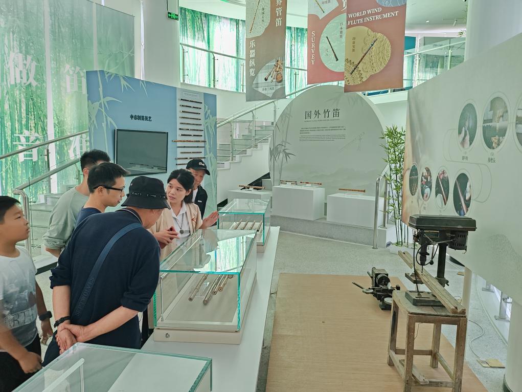 10月29日上午,游客在中泰竹笛展示館里參觀。新華社記者馮源 攝