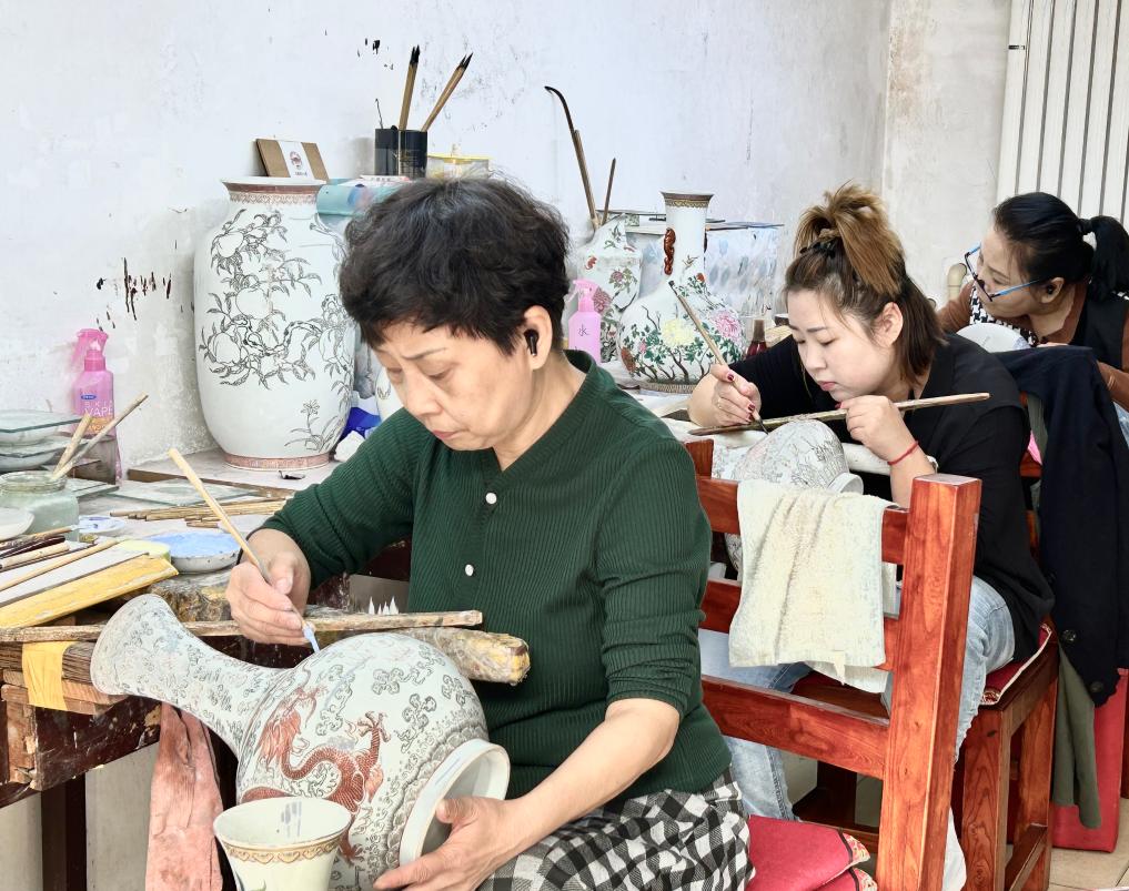走進(jìn)天津市粉彩瓷器制作技藝傳承人王作彬的工作室,10余位匠人正手握畫(huà)筆,聚精會(huì)神創(chuàng)作以楊柳青年畫(huà)為題材的雕瓷或瓷板。“年畫(huà)從紙上‘搬’到粉彩瓷上,很多人是慕名來(lái)參觀(guān)選購(gòu)。”王作彬說(shuō)。如今,村里不少人在王作彬的帶領(lǐng)下,悉心學(xué)習(xí)技藝,走上了致富道路。