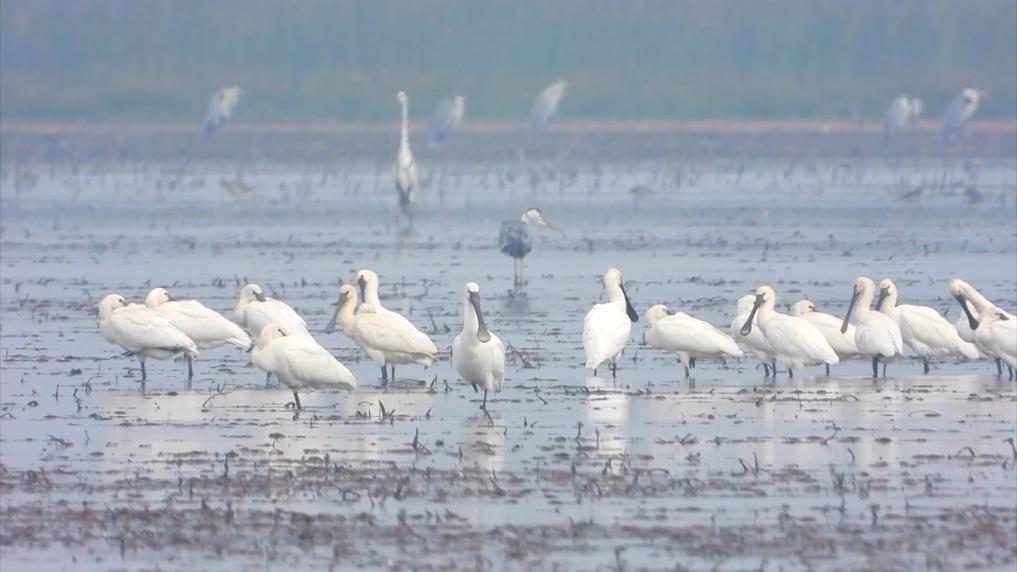 中國最大淡水湖鄱陽湖是白鶴、東方白鸛、小天鵝等珍稀候鳥鐘愛的越冬“天堂”。每年有數十萬只候鳥飛抵這里,最高峰時可達約80萬只。