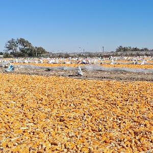 新疆昌吉回族自治州奇臺(tái)縣晾曬場(chǎng)上等待脫粒交售的玉米。新華社記者茍立鋒 攝