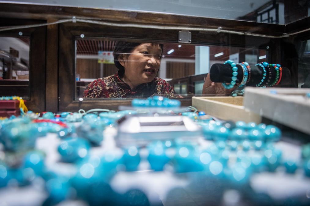“村里最早做綠松石電商的都是年輕人,后來(lái)其他村民也在他們的帶動(dòng)下做起了電商。”周申元說(shuō),村民們告別了過(guò)去面朝黃土背朝天的生活,現(xiàn)在村里很多年長(zhǎng)的人也能熟練使用手機(jī)賣貨。