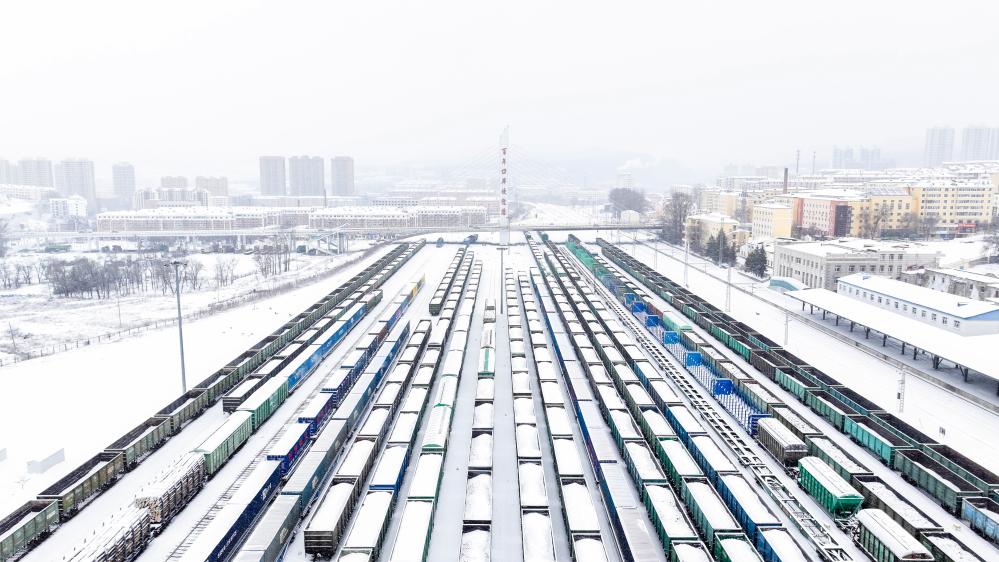 近日,“百年口岸”綏芬河銀裝素裹。雖然天寒地凍,但綏芬河鐵路口岸貨運現場吊機轟鳴、貨箱起落,一列列中歐班列往來穿梭,呈現一派繁忙景象。記者從中國鐵路哈爾濱局集團有限公司獲悉,今年以來,中歐班列東通道綏芬河、同江鐵路口岸班列數量持續保持高位運行。