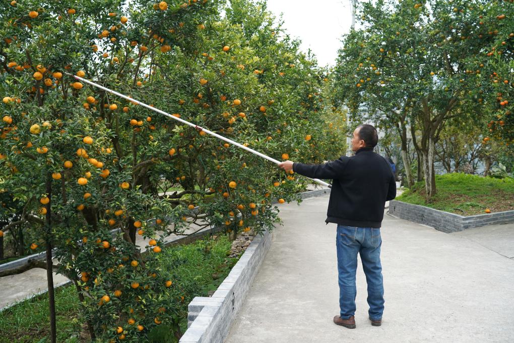 段家河鎮李家莊村村民李廣在家門口采收獅頭柑。新華社記者邵瑞 攝
