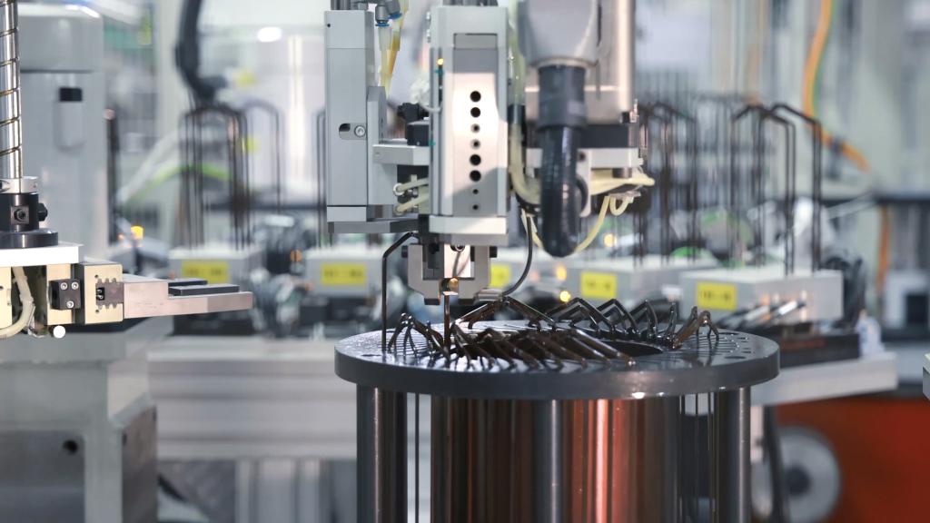 走進智新科技電驅動工廠的生產車間,高度自動化的生產流程令人耳目一新。機床上,懸臂輕盈地夾起一根根“發卡”般的扁銅線,將其穿入電機定子槽內,不多時一個層疊密實的組件便生產完成。據介紹,整條產線自動化率達95%,僅需1至2人操作。