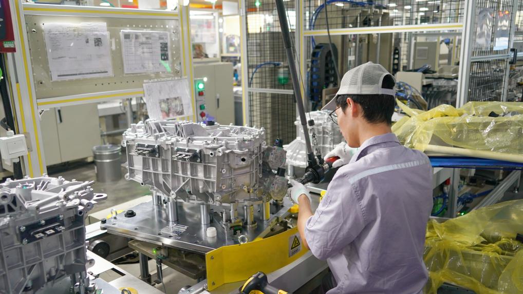 工人正在給電驅總成安裝油泵。新華社記者龔聯康 攝
